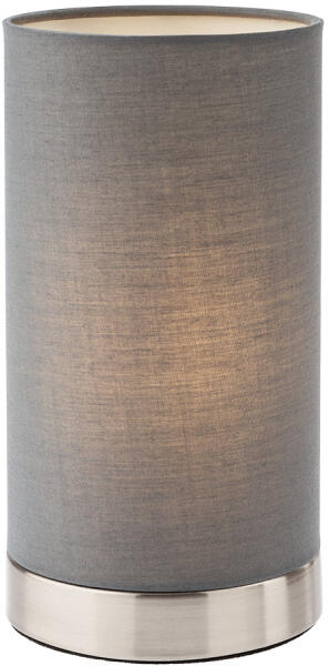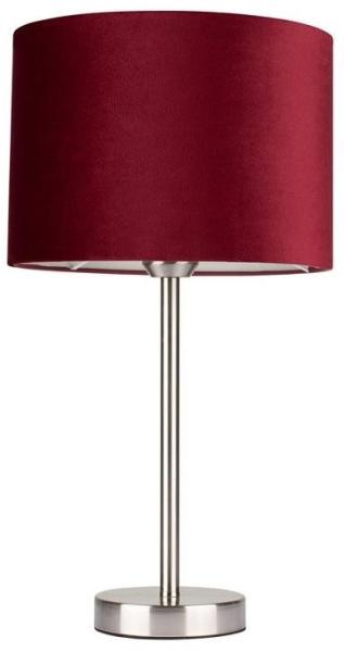 Modern asztali lámpa, nikkel színű fém szerkezettel, PVC belső borítással, bézs, burgundi piros vagy szürke szövet árnyékolóval. A lámpa E14 foglalattal, cserélhető fényforrással került kialakításra...