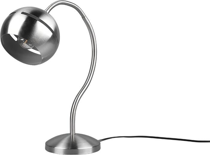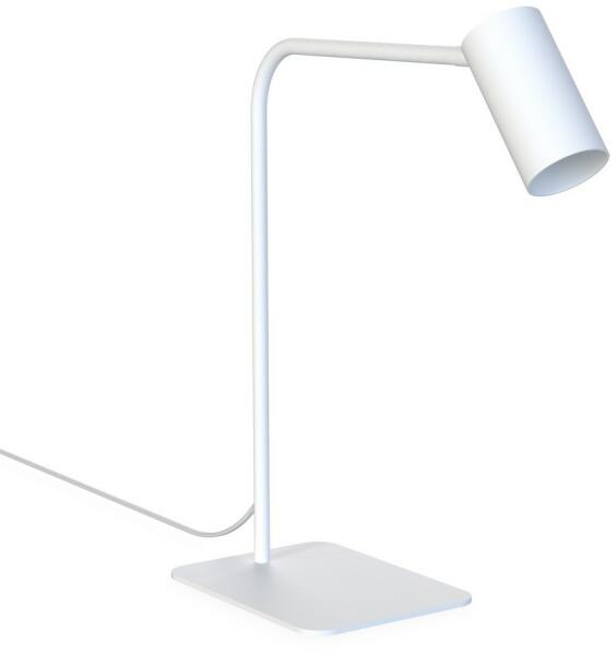 Modern stílusú, fehér festett fém asztali lámpa, melynek feje forgatható, így a fény a kívánt helyre irányítható. Dugvillás vezetéke 130 cm hosszú. LED fényforrással működtethető, mely nem része a csomagolásnak...