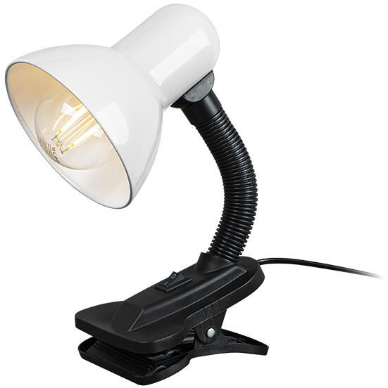 LB-08 fehér asztali lámpa otthonra, irodába vagy műhelybe . Ahasznált fogantyúnak köszönhetően különböző vastagságú deszkára rögzíthetjük. LEGFONTOSABB INFORMÁCIÓKÁllítható, mozgatható lúdnyakú karAsztali konzolra történő rögzítés. Népszerű menet E27 izzókhozTápkábel 180 cm hosszúsággal. Nagyon egyszerű felszerelés és gyors izzócsere. ON/OFF kapcsoló a