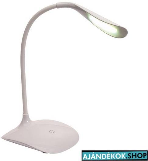 SWAN asztali lámpa : rugalmas forgó nyakkal, 14 db LED-del, 3 fokozatú fényerő állítási funkcióval, érintés érzékeny vezérlés, USB kábellel tölthető (kb. 120 cm), mobil használat a beépített akkumulátornak köszönhetően, fogyasztás akár 1,5 Watt, gumírozott lábbal a biztos tapadásért, ajándékdobozban. Termék színe: fehér