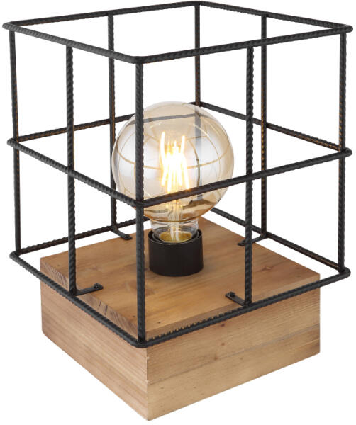 Műszaki adatok: E27 1x 60 Watt Foglalat típusa: E27 Fényforrást tartalmaz: nem Váz anyaga, színe: fa, barna Búra anyaga, színe: fém, fekete Magasság: 265 mm Szélesség: 200 mm Hosszúság: 200 mm Súly: 1 kg IP védettség: IP20 Üzemi feszültség: 230 Volt EAN kód: 9007371418909 Egyéb információ: fémhálós búra