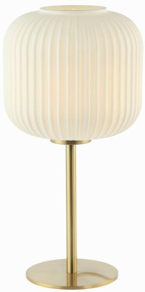 Az OLTAMAR asztali lámpa kerek lámpabúrát tartalmaz, amely homokszínű lapos fémcsíkokból áll, állványtalppal. A lámpának két árnyalata van egymáson elhelyezve, így rácshatást kelt...