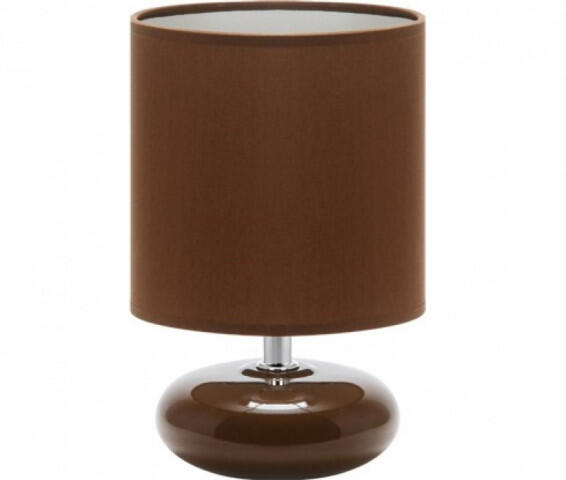 Design asztali lámpa. E14 foglalattal rendelkezik, maximum 40 Wattos LED izzó rakható bele. Kapcsolóval rendelkezik. A hálózati kábel hosszúsága 150 cm. Beltéri használatra javasolt, vizállósági szint IP20. Cserélhető fényforrás típusa E14 Felhasználási terület Nappali Szín Barna Feszültség 220-240 V. Vízállósági szint IP20 Hosszúság 130 mm. Szélesség 130 mm. Magas