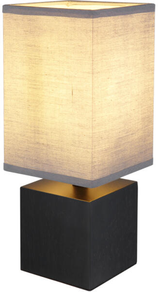 Asztali lámpa fa fehérre meszelt, textil antracit, fekete PVC kábel, billenőkapcsoló a kábelen, HxSzxM: 120x120x300mm, kábelhossz 1500mm, nem tartozék: 1x E27 7W 230V