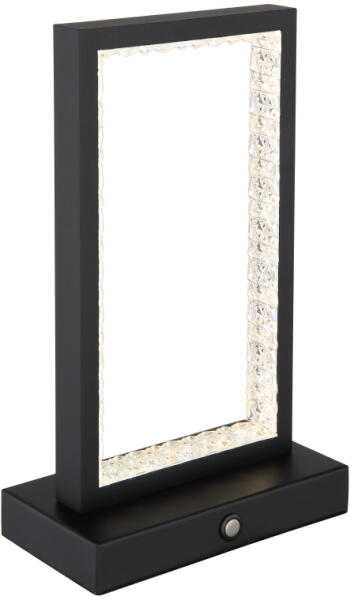 Újratölthető asztali lámpa fém fekete matt, átlátszó akril, kábel PVC fekete, érintő kapcsoló, dimmelhető, érintéses dimmer, színrögzítés, tartozék: CR18650, töltési idő kb. 4 óra, HxSzxM: 140x75x230mm, LED 3W 230V, 300lm forrás, 120lm kimenet, CCT 27