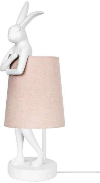 KARE asztali lámpa RABBIT fehér / rózsaszín. A Kare Design márka egyedülálló ajánlata. Egy gyönyörű lámpa egy félénk nyuszi formájában, amely egy vászon lámpaernyővel borítja magát. A figura nagy odafigyeléssel készült fehér porszórt polirezinből. A dekoratív, avantgárd szemet gyönyörködtető világítás tökéletesen illeszkedik egy modern környezetbe. Világít