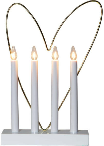 E10-KERZENSTÄNDER/4 WEISS/MESSING 250X75 EGLO Christmas GLOSSY HEART Dekoráció gyertyatartó termék anyaga: fa, acél; termék színe: fehér, sárgaréz; IP védelem: IP20; Teljesítmény: 4X3W; Izzó típusa: E10; Fényforrás tartozék: igen