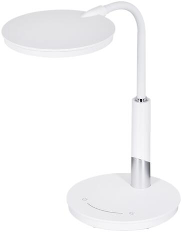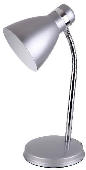 Asztali lámpa RÁBALUX Patric LED 14W fém ezüst Praktikus íróasztali megvilágítást biztosító asztali lámpa. 32 cm magas, fémből készített, ezüst és króm színű lámpatest, ezüst színű, pozícionálható lámpabúrával, hálózati vezetékkel és kapcsolóval. A lámpatest max. 40W teljesítményű, E14-es foglalatú, halogén és energiatakarékos fényforrással is használ