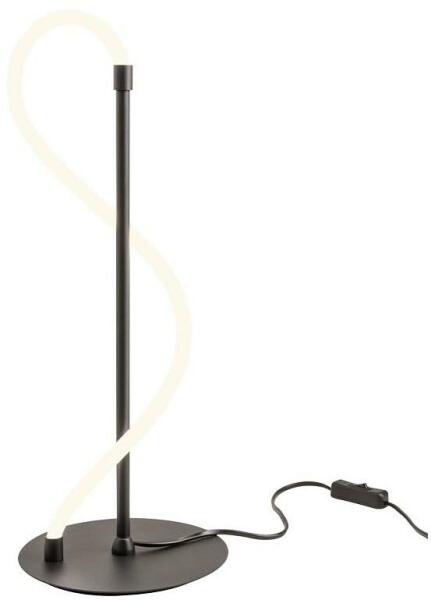 Modern, henger alakú asztali lámpa elegáns dizájnnal, fém alapból és fekete színű diffúzorból. A lámpa E27 foglalattal, cserélhető fényforrással került kialakításra. A lámpa fényforrást nem tartalmaz...