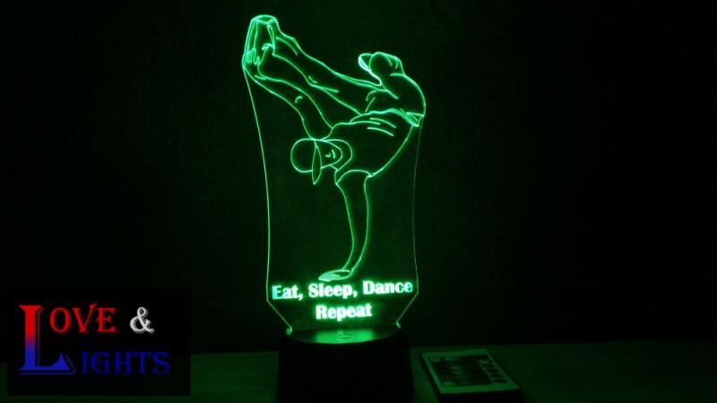 Hip-hop táncos mintás 3D lámpa - egyedi személyre szabható felirattal 3D LED illúzió lámparemek ajándék mely használható éjjeli fényként, hangulatvilágításként, dekorációként, akár kültéri világításként napelemes talppal. 3d lámpáink előnyei: különböző színekben világít automatikus színátmenet is beállítható egyedi gravírozású akril lap személyre sza