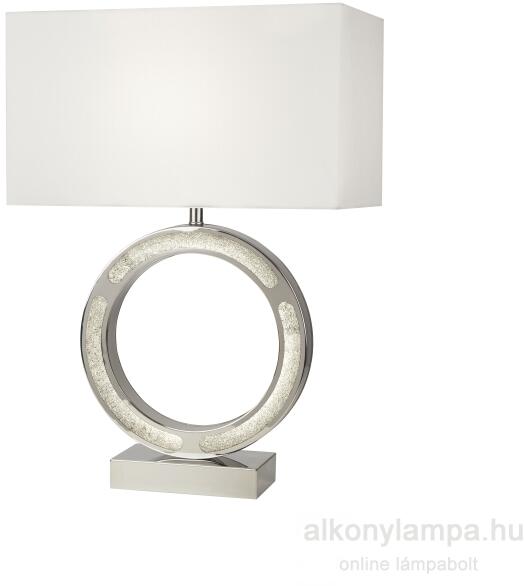 Műszaki adatok: E27 1x max. 60watt Fényforrás tartozék: nem (E27 1x max. 9watt LED fényforrással is üzemeltethető)Anyag: fém, textil, üvegSzín: króm, fehérTeljes magasság: 60cmHosszúság: 32cmErnyő magasság: 20cm