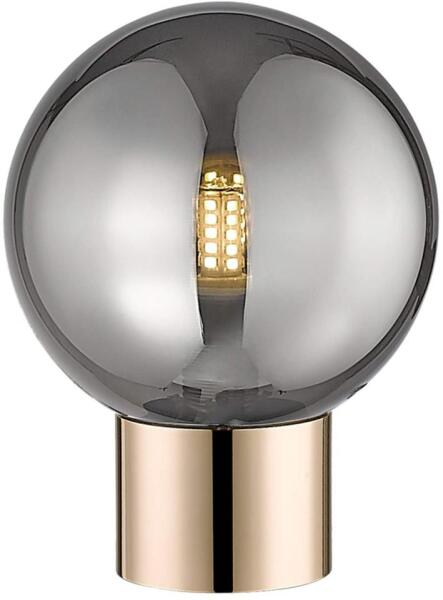 Füstszínű üvegbúrás asztali lámpa arany színű vázzal. A csomagolás a fényforrást nem tartalmazza.