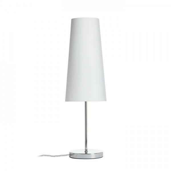 Asztali lámpa textil ernyővel és fém talppal. Alkalmas LED E27 fényforrásokhoz.
