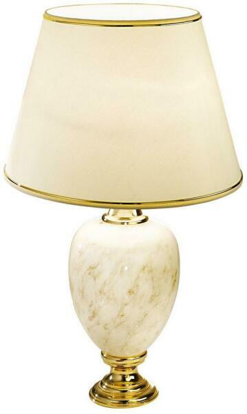 Aranyozott asztali lámpa, márvány kerámiából, lámpaernyővel. Energiatakarékos izzóval is használható.