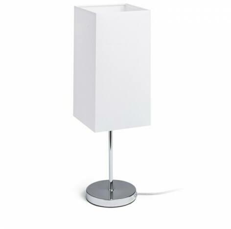 Asztali lámpa textil ernyővel és fém talppal. Alkalmas LED E27 fényforrásokhoz.