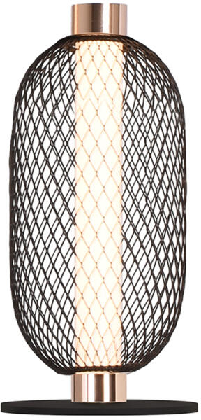 Asztali LED lámpa arany színű lámpatesttel és fekete, rácsos kialakítású lámpabúrával. Egyedi megjelenése modern stílusú terek tökéletes kiegészítője lehet...