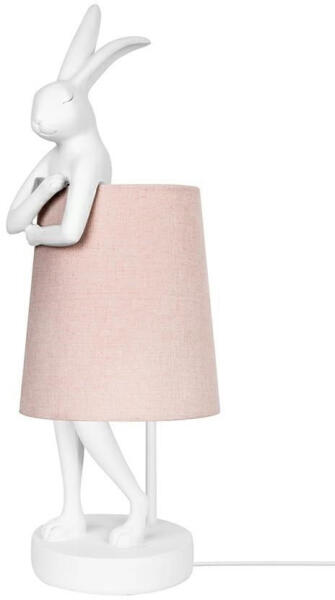 Egyedi, játékos asztali lámpa egy bájos, szemérmes nyuszi figurával, amely rózsaszín lenvászon ernyőt tart. Ez a különleges dizájn darab tökéletes választás modern és gyerekszobák megvilágításához. Játékos és elegáns világítás művészi kivitelbenA KARE Design Rabbit asztali lámpa egy különleges darab, amely egyesíti a funkcionalitást és a művészi dizájnt. A