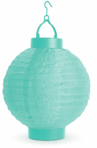 - Kiváló hangulatvilágítás - Türkiz színű lampion, 1 db hidegfehér LED-del - On/Off kapcsolóval ellátott - Akasztóval rögzíthető - Összehajtható - Átmérő: 21 cm Kiváló választás esküvői dekorációként, de kertjének, teraszának, erkélyének otthonosabbá tételére is használhatja! A szolár dekorfényeket bárhová elhelyezheti, nem igényelnek vezetékelést és t
