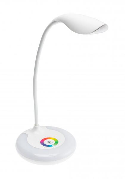 Modern munkalámpa. A rugalmas nyaknak köszönhetően irányítható. A kapcsoló a lámpaernyőben található. LED-es fényforrás (16xLED SMD). Semleges fehér fénnyel világít.