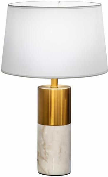 Elegáns, 61cm magas komód lámpa lámpa fehér színű textil búrával, fehér színű márvány és szatinált bronz színű fém lábbal, cserélhető E27-es LED fényforrással.