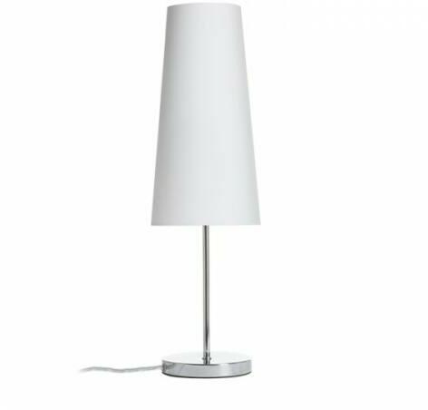 Asztali lámpa textil ernyővel és fém talppal. Alkalmas LED E27 fényforrásokhoz.
