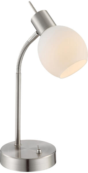 Asztali lámpa matt króm váz, fehér fehér búrával. A LED fényforrás a termék tartozéka. . 1xE14 LED 3W 230V