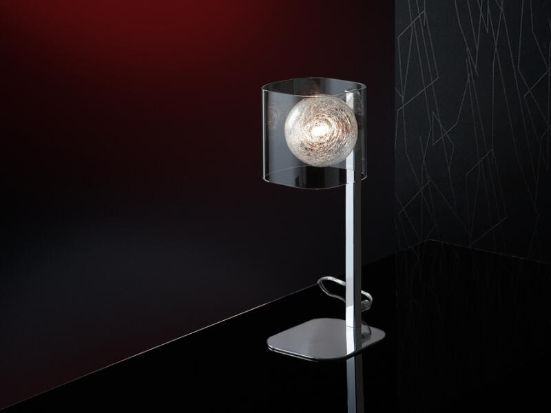 Asztali lámpa 1 db fémből, króm kivitelben. Öntött üvegbúrák, üvegszálakkal díszítve...