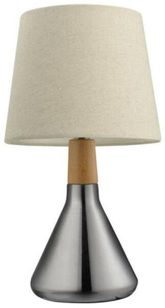 Design asztali lámpa, melynek búrája homok színű fehér szövet, a lámpatest színe króm, fa résszel. LED fényforrással használható, amely nem tartozék. Az akció a készlet erejéig érvényes. Specifikációk:Gyártó: Nova Luce Cikkszám:: NL-7605166 Foglalat: 1 x E14 Méret (ma x sz x mé): 335 x 200 x 0 mm IP-védettség: IP20 Tápfeszültség: 230 Volt Anyag: szövet Stílus: De