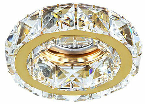 Beépíthető lámpa összefűzött kristály elemekből. Kivágási átmérője 5,5cm, magassága szerelvények nélkül 5cm. Fényforrást nem tartalmaz.