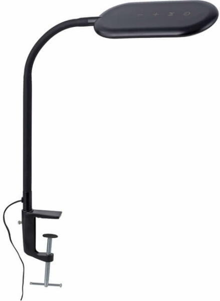 A fekete színű íróasztali lámpa max. 6cm vastagságú asztalra rögzíthető satuval. A rugalmas lámpakar igény szerint állítható. A beépített CCT fénykezeléssel szabályozhatja a fény színhőmérsékletét a meleg fehértől a hideg fehérig. Ezen kívül a lámpa praktikus 3 fokozatú fényerőszabályzó funkcióval rendelkezik. A fényszín beállítása, valamint a fényerőss