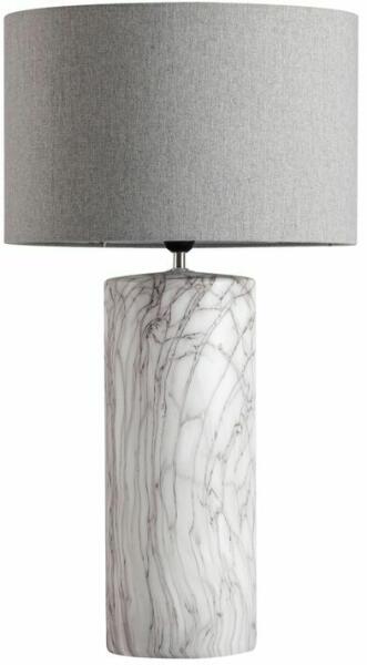 Asztali lámpa KAREN. A lámpa teste fémből, a lámpaernyő pedig textilből készült. Az izzó nem tartozék. C típusú dugalj - további információk itt.