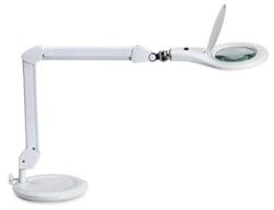 Ultramodern LED technológia, tetszetős kivitel. Kettős funkció: nagyító és asztal megvilágítás, nagyítóval ellátott üveg lencse. Precíz munkavégzéshez laboratóriumokba, precíziós mechanikai munkákhoz ajánlott. - stabil műanyag talp nehezékként szolgáló súlybetéttel - paralelogramma alakú fémkar - nincs árnyékolás: a LED diódák körkörös elhelyezkedése lehető