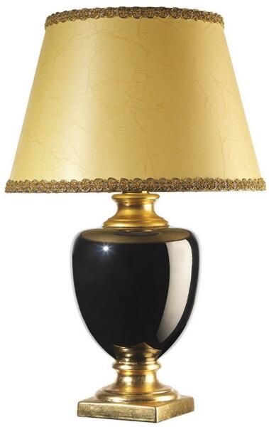 Extravagáns asztali lámpa, vidám színekkel. A lámpatest kiváló minőségű fémből készült, a szövet lámpaernyőt pedig arany csík öleli körbe. Csodálatos...