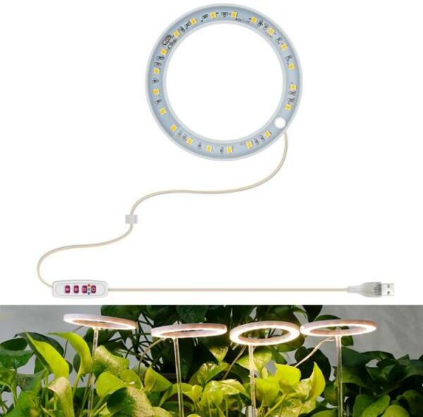 Növény nevelő LED lámpa kerek 1-es (napfény)A 360 fokos körkörös megvilágítás segítségével a növények egyenletesebb fényt kapnak. Beállítható időzítés és a fény intenzitása öt szintben beállítható. Hatékonyan tudja szabályozni a fénymennyiséget és ezzel is megakadályozza a fényhiány miatti megnyúlást. Az USB csatlakozóval többféle tápegységről tudja ha