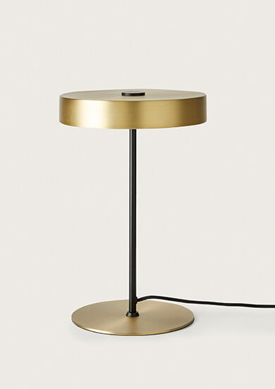 Modern asztali lámpa, fém lámpatesttel és arany színű belsővel. A lámpa ki-/bekapcsolóval rendelkezik...