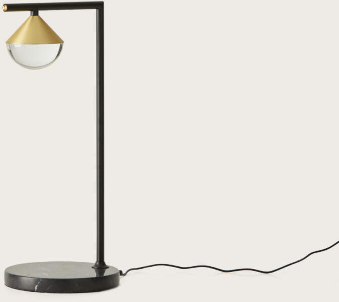 Asztali lámpa modern dizájnnal. Alkalmas nappali vagy hálószoba megvilágítására. Tápkábel hossza: 2 m.