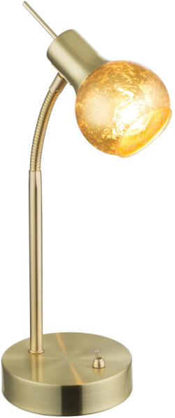 Kapcsolóval és flexo karral ellátott asztali lámpa a Globo gyártótól. A lámpa E14-es foglalatot tartalmaz, de viszont az égö nem tartozéka a csomagolásnak. Megfelel az ön modern író valamint éjjeli asztalára. Elvarázsolja önt a különleges aranyozott búrájával.