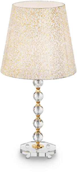 Elegáns, letisztult vonalak jellemzik ezt a lámpacsaládot. Aranyozott váz, kristály gyertyatartó. Látványos egyben klasszikus szövet búra, virág mintával. Lámpa magassága 675mm.