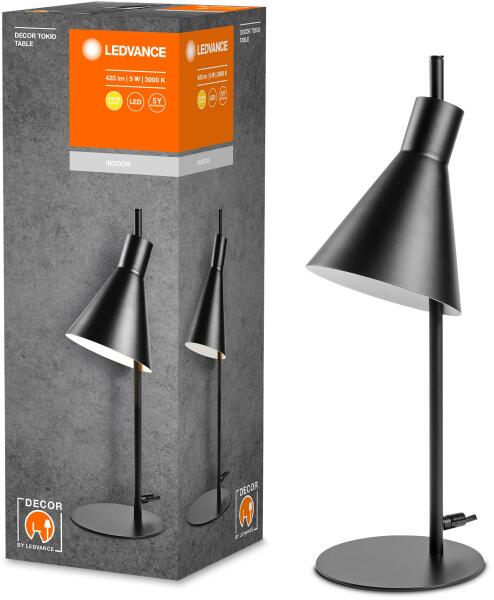 Ledvance Decor Tokio LED asztali lámpa, 5W, 260 lm, Meleg fény (3000K), 1.8m tápkábel, 44cm, IP20, acél, Fekete Alkalmazási területek- Folyosók- Bejárati területek- Nappali helyiségek- Hálószobák- Irodák A termék előnyei- Elegáns design- Japán design Termékjellemzők- 3000 K- Ház anyaga: fém- Dekoratív lámpatest