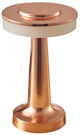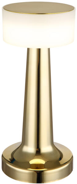 Újratölthető asztali lámpa műanyag sárgaréz/fehér, kábel PVC fekete, érintéses be/ki kapcsoló, fokozatmentes érintéses dimmer, színrögzítés, akku:CR18650 800mAh 3.7V, töltési idő kb. 2 óra, ø:95mm, M:215mm, LED 1W 230V, 100lm forrás, 55lm kimenet, CCT 27