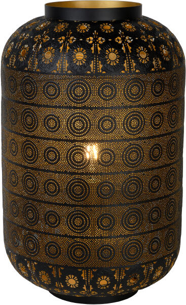 Keleties hangulatot keltő asztali lámpa, kívül fekete, belül pedig arany színnel. A lámpa E27 foglalattal, cserélhető fényforrással került kialakításra. A lámpa fényforrást nem tartalmaz...