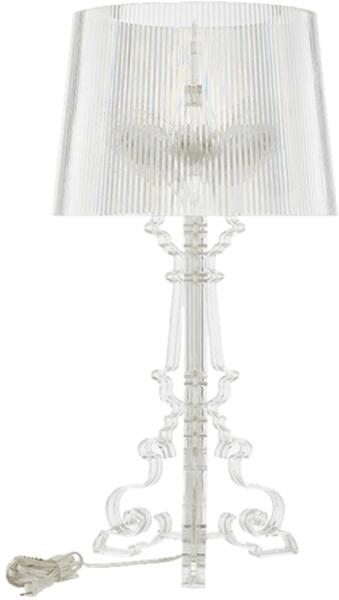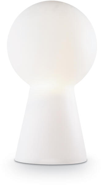 Króm színű fém vázas asztali lámpa bábu formájú, fehér színű savmart üveg búrával, vezetékre szerelt kapcsolóval.