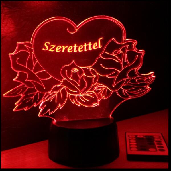 Szív alakú 3D LED illúzió lámparemek ajándék mely használható éjjeli fényként, hangulatvilágításként, dekorációként, akár kültéri világításként napelemes talppal. 3d lámpáink előnyei: különböző színekben világít automatikus színátmenet is beállítható egyedi gravírozású akril lap személyre szabható egyedi felriattal több mint 200 választható lámpa m