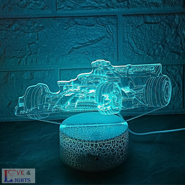 Forma 1 autó - Mercedes - mintás 3d led lámpa, éjjeli lámpa 3D LED illúzió lámpa Forma 1 rajongóknak! F1 sportrajongóknak különleges ajándék lehet, ez a Forma 1 autó - Mercedes mintás 3D illzió lámpa. 3d lámpáink előnyei: különböző színekben világít automatikus színátmenet is beállítható egyedi gravírozású akril lap személyre szabható egyedi felriattal több m