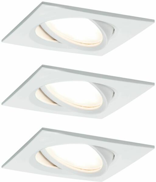 Paulmann 93678 beépíthető lámpa, 84 mmx84 mm, négyzet, 3db-os szett, billenthető, fényerőszabályozható, fehér, 2700K melegfehér, 3x Coin foglalat, 425 lm, IP23