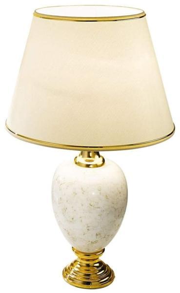 Aranyozott asztali lámpa, márvány kerámiából, lámpaernyővel. Energiatakarékos izzóval is használható.