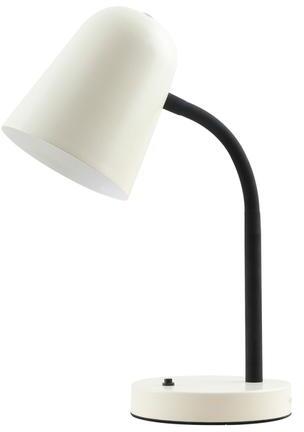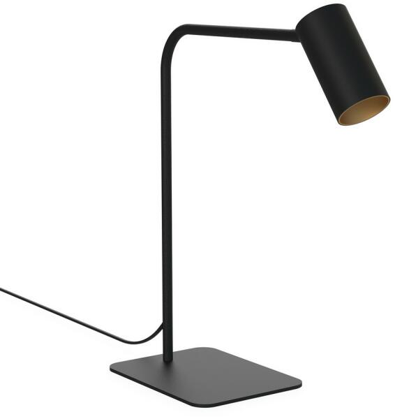 Modern stílusú, festett fém asztali lámpa, melynek feje forgatható, így a fény a kívánt helyre irányítható. A lámpatest, illetve a fej külső része fekete, belső része arany színű. Dugvillás vezetéke 130 cm hosszú. LED fényforrással működtethető, mely nem . .