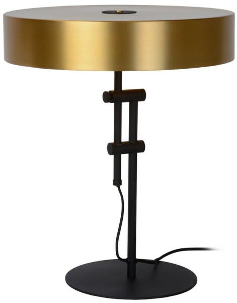 Vonzó asztali lámpa, fekete színű, kerek acél alapból és henger alakú arany színű búrával, fekete díszítőelemmel a tetején. A lámpa E27 foglalattal, cserélhető fényforrással került kialakításra. A lámpa fényforrást nem tartalmaz...