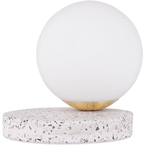 "Az Nova Luce Beson design stílusú, fehér színű asztali lámpa, cserélhető fényforrással. Az üveg búra opál színű, átmérője 15 cm. A lámpa teljes magassága 18 cm. A lámpatest márványból készült, átmérője 17,5 cm, magassága 3 cm. Fehér dugvillás vezetékén található a billenő kapcsoló. Milyen a lámpa fénye?Ez az asztali lámpa a választott fényforrástól fü