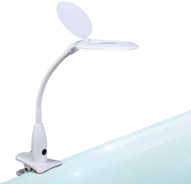Asztali LED lámpa - nagyítóval - csipeszes - fehér Olykor mindenkinek szüksége van egy kis extra megvilágításra és fókuszra ahhoz, hogy a kisméretű munkákat is tökéletesen elvégezhessen. Amikor apró dolgokat kell összeszerelni, elektronikai alkatrészeket precízen a helyére illeszteni, sminket, körömépítést, festést végezni vagy csak hobbyból modellezni, ez a nagyító